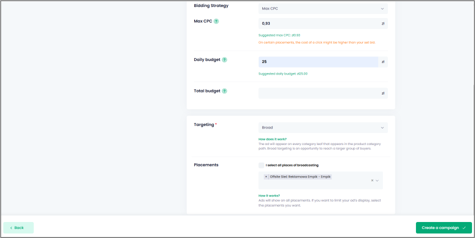 Creating a Product Campaign In the Empik Ads dashboard, you will find a summary of your advertising account’s performance and a list of all active and historical campaigns. To create a new campaign, click “Add Campaign” (Dodaj kampanię) and then ...