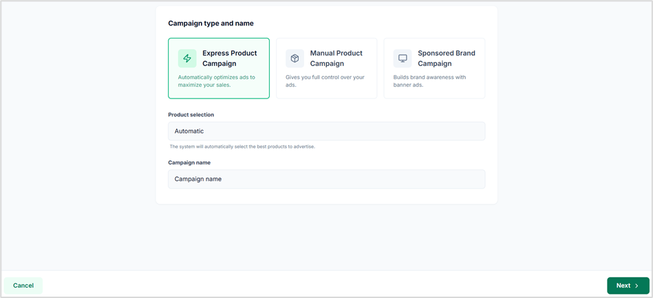 When to use the Express Product Campaign