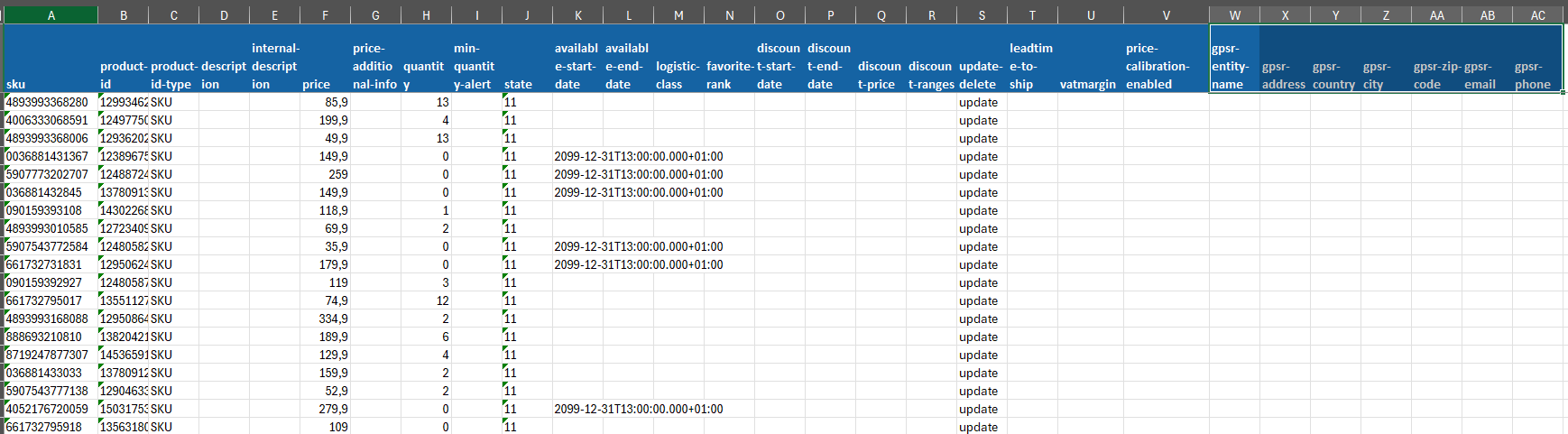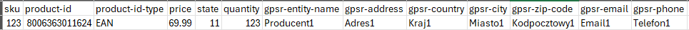 - sku;product-id;product-id-type;price;state;quantity;gpsr-entity-name;gpsr-address;gpsr-country;gpsr-city;gpsr-zip-code;gpsr-email;gpsr-phone