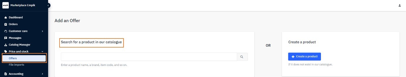First, check whether the product already exists in our catalog - enter the EAN code in the Search for a product in our catalog field.