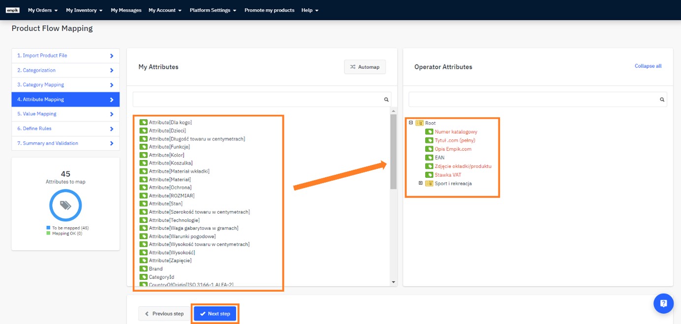 and drop your category onto the empik.com category. When done, click Next step.