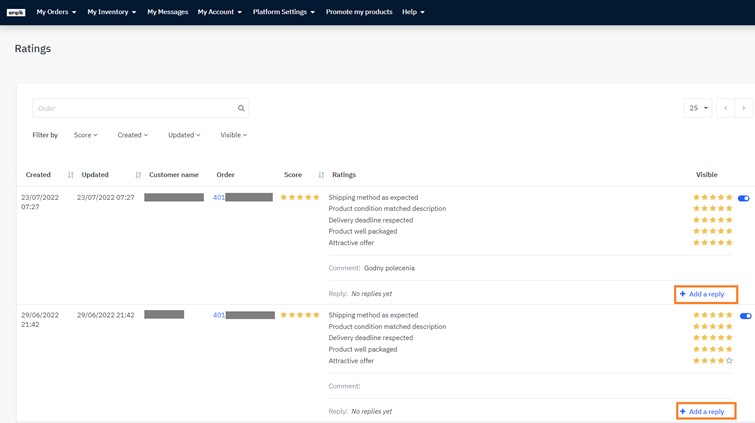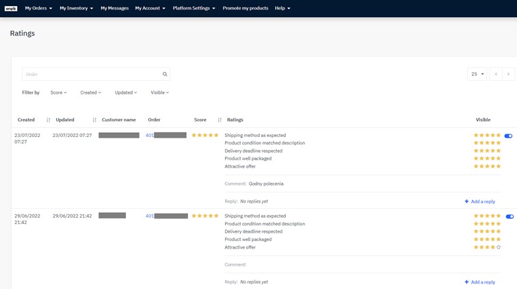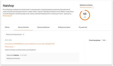 Merchants on EmpikPlace have the ability to answer customers’ ratings and comments.