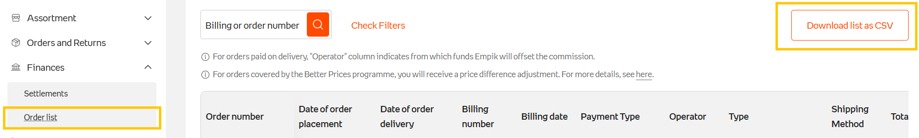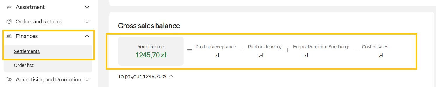 Sum the values from column H. This amount represents all COD orders. You settle these directly with the carrier.