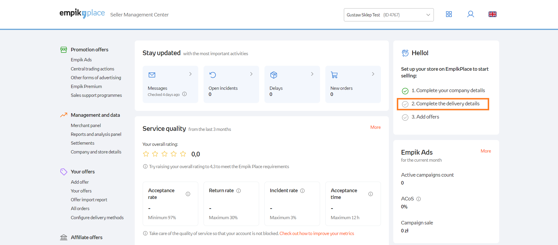 Default lead time to ship on EmpikPlace is 2 days. If it takes you longer to