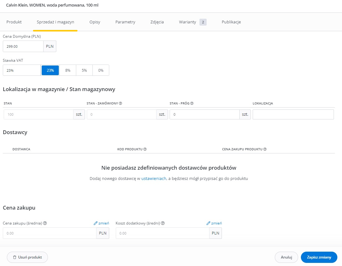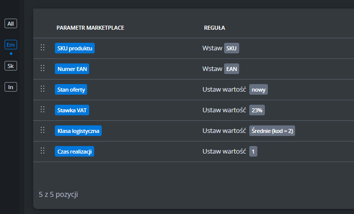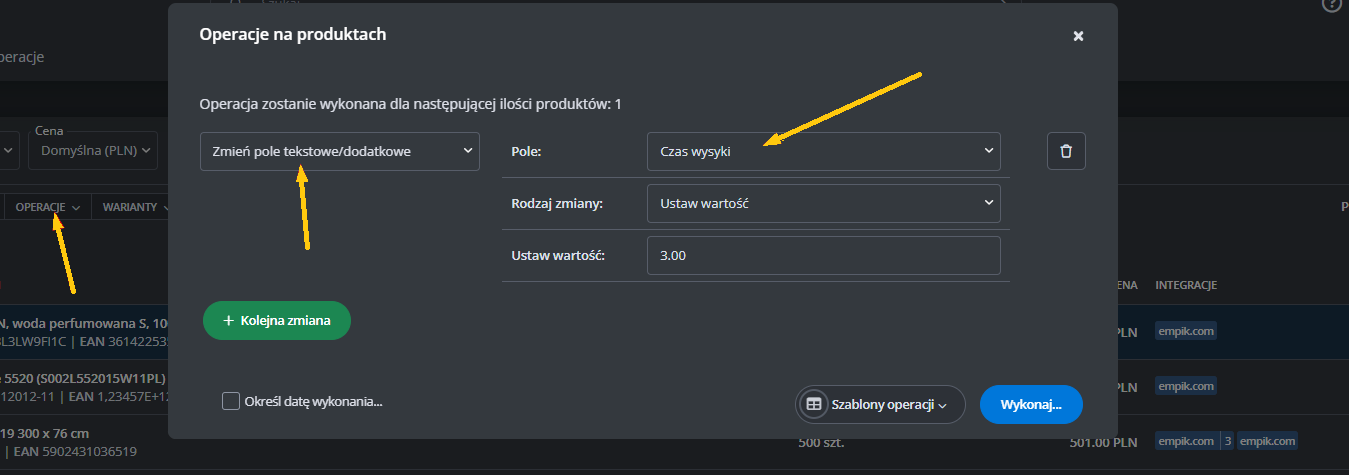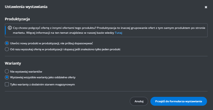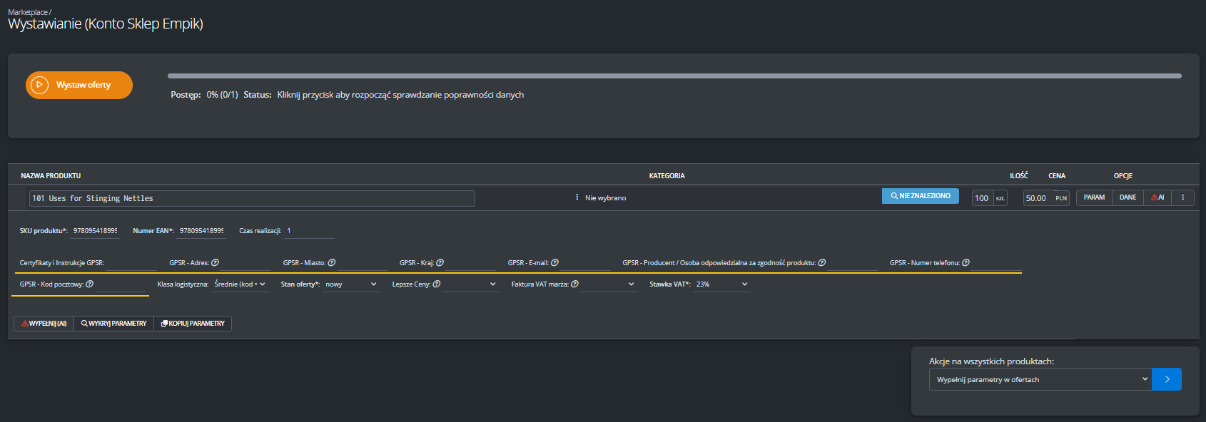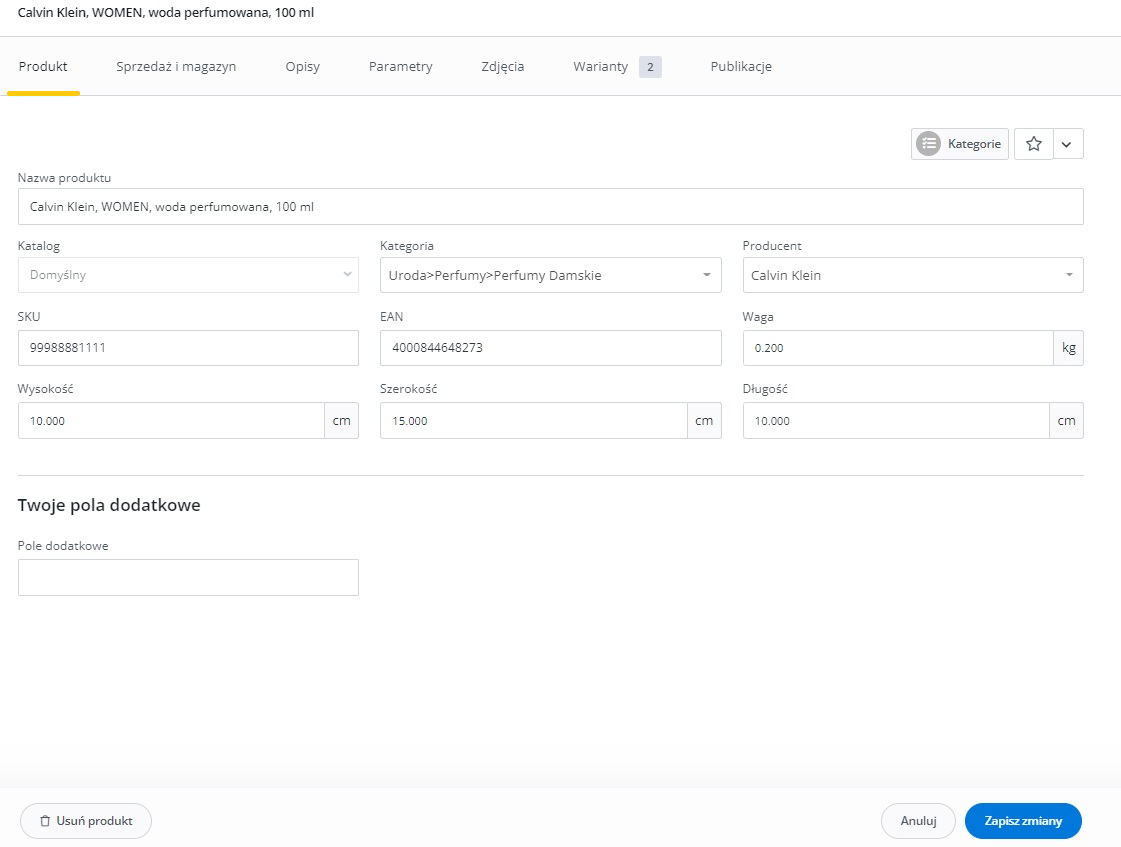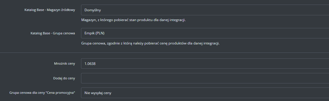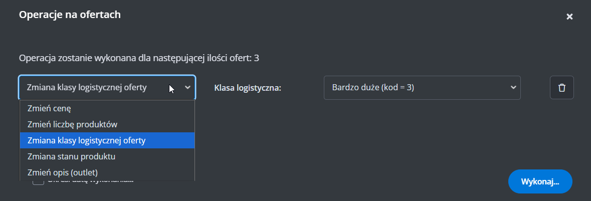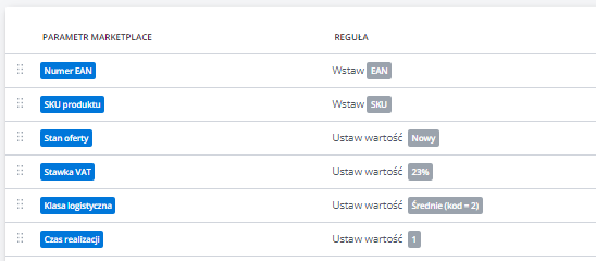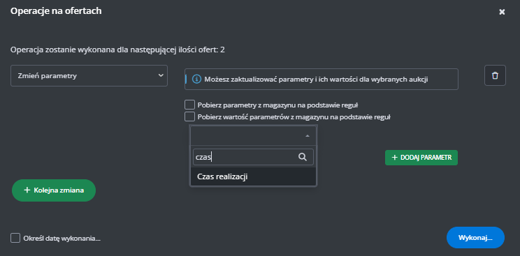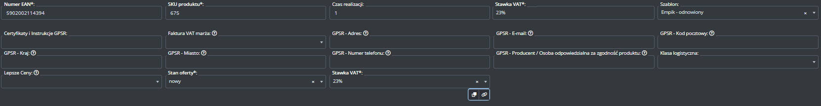 Dodatkowe ustawienia (ceny, czas wysyłki, stan, klasa logistyczna)