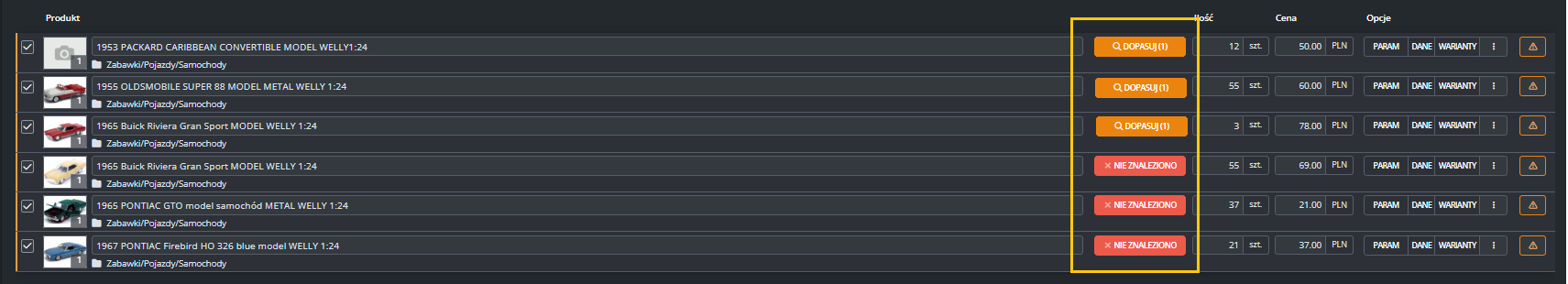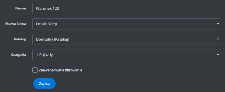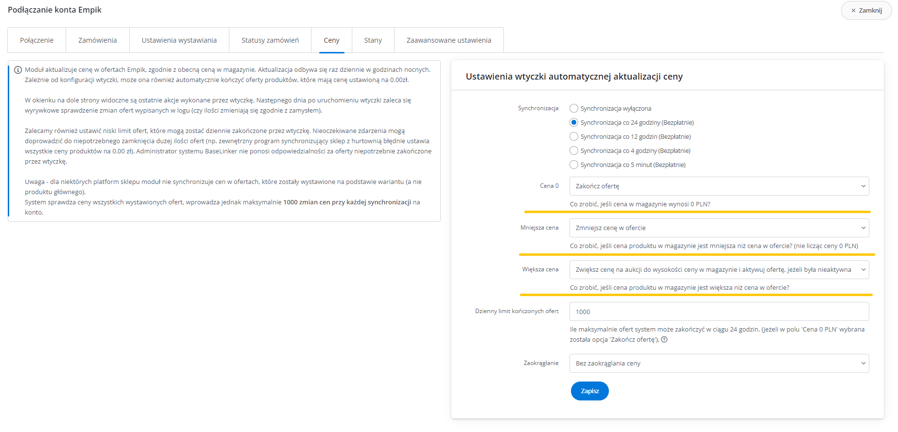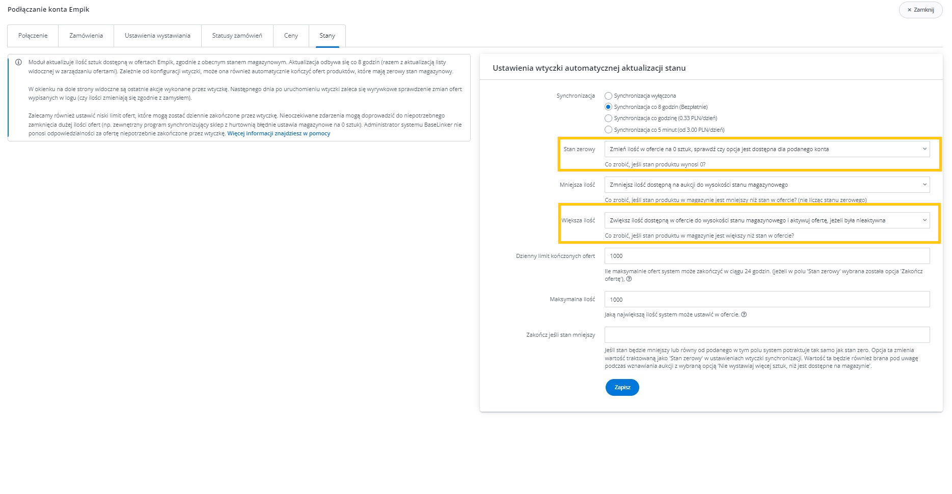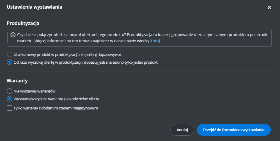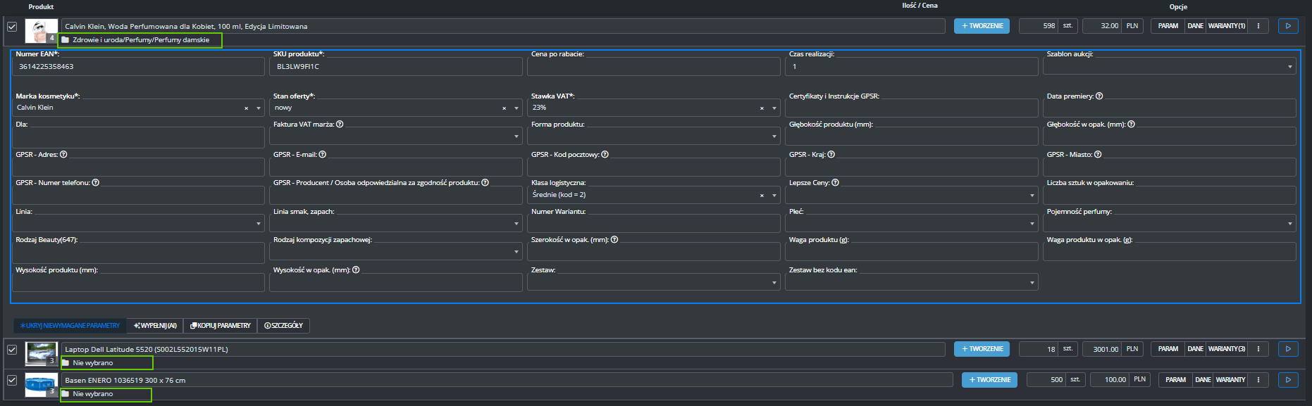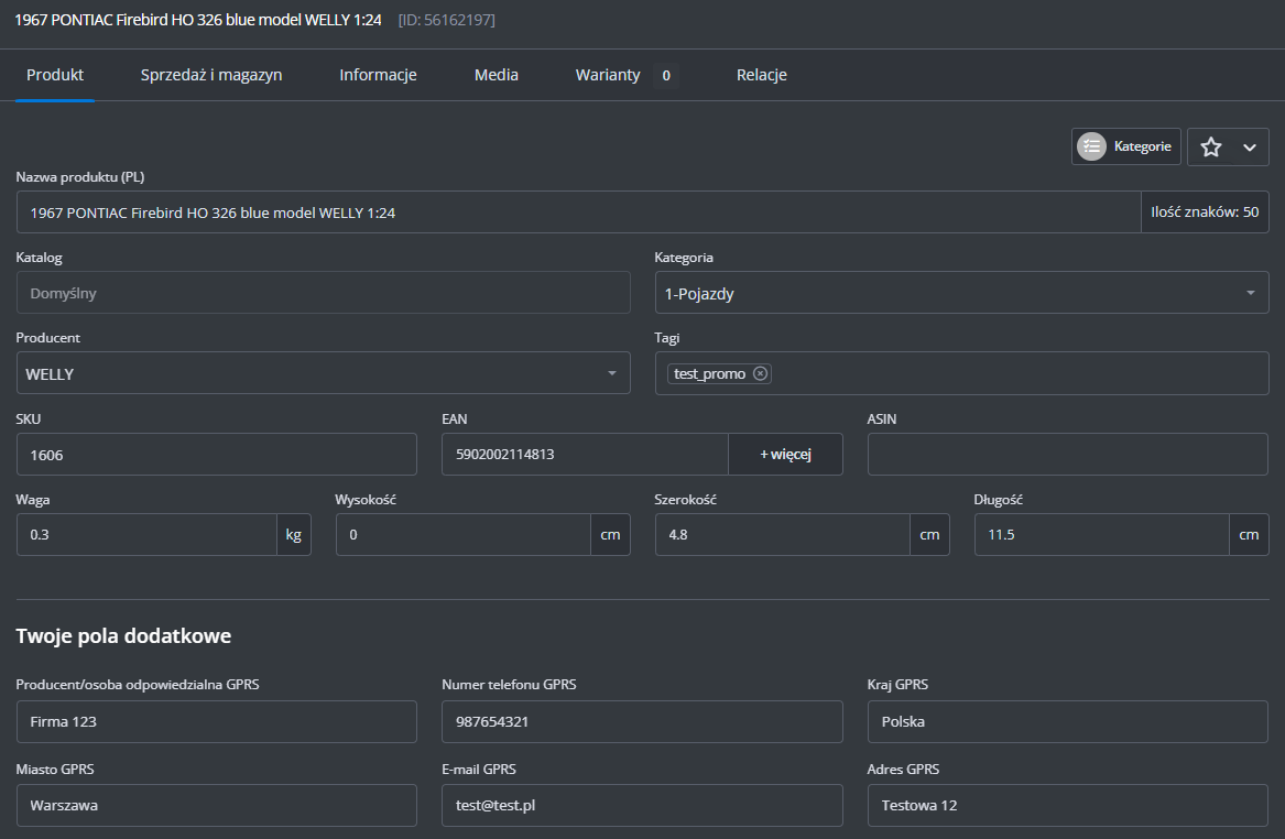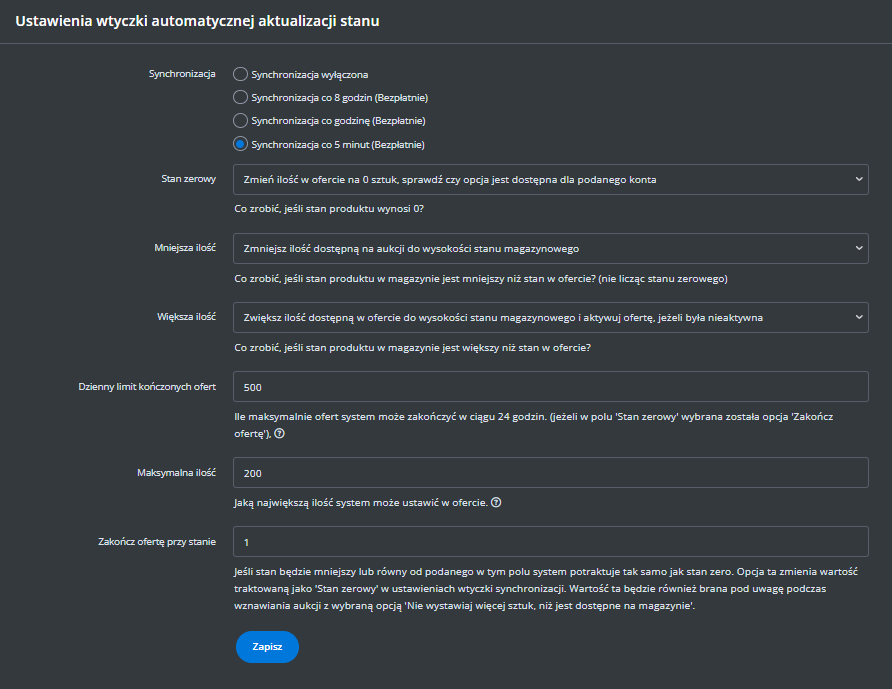 Dodatkowe ustawienia (ceny, czas wysyłki, stan, klasa logistyczna)