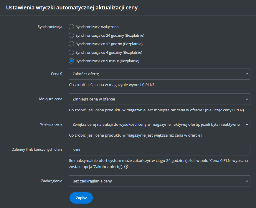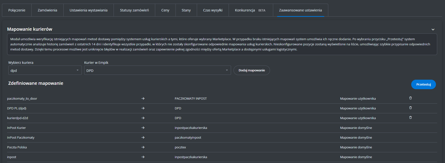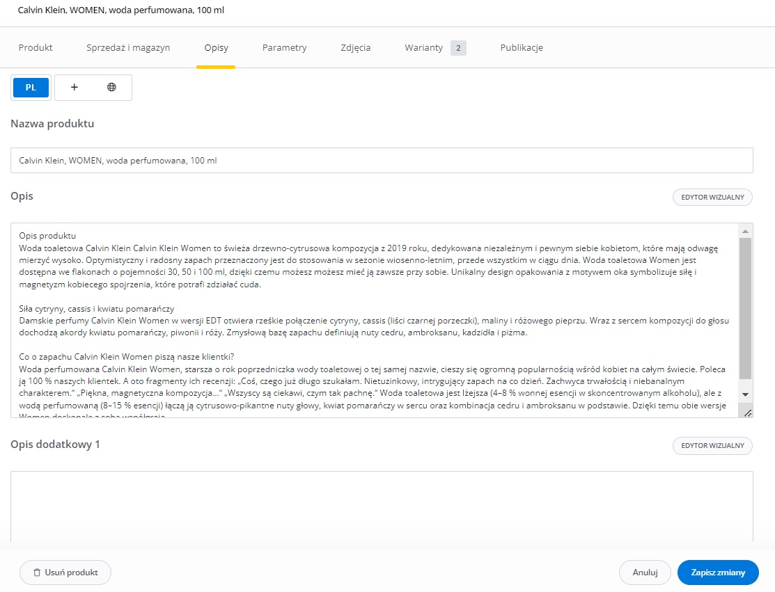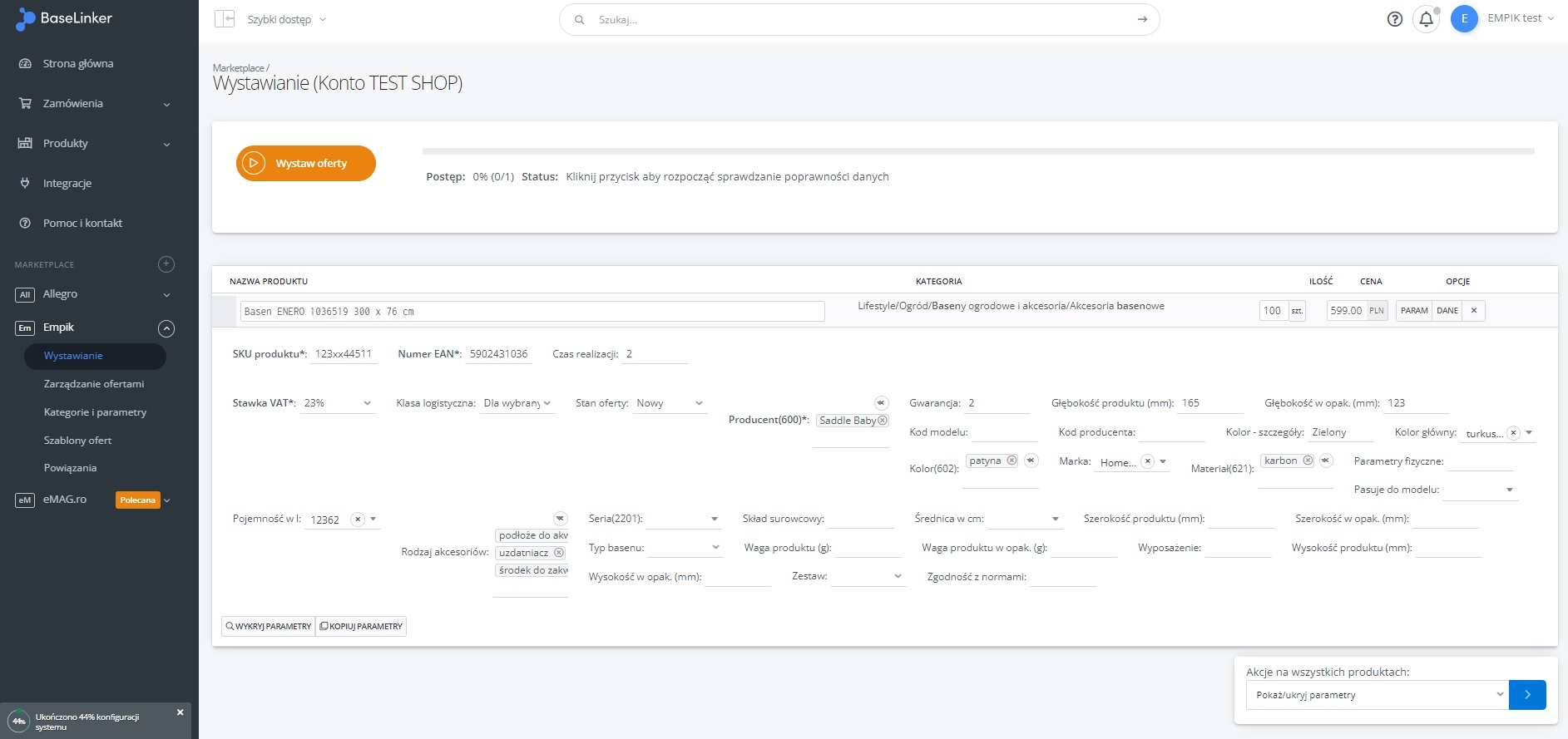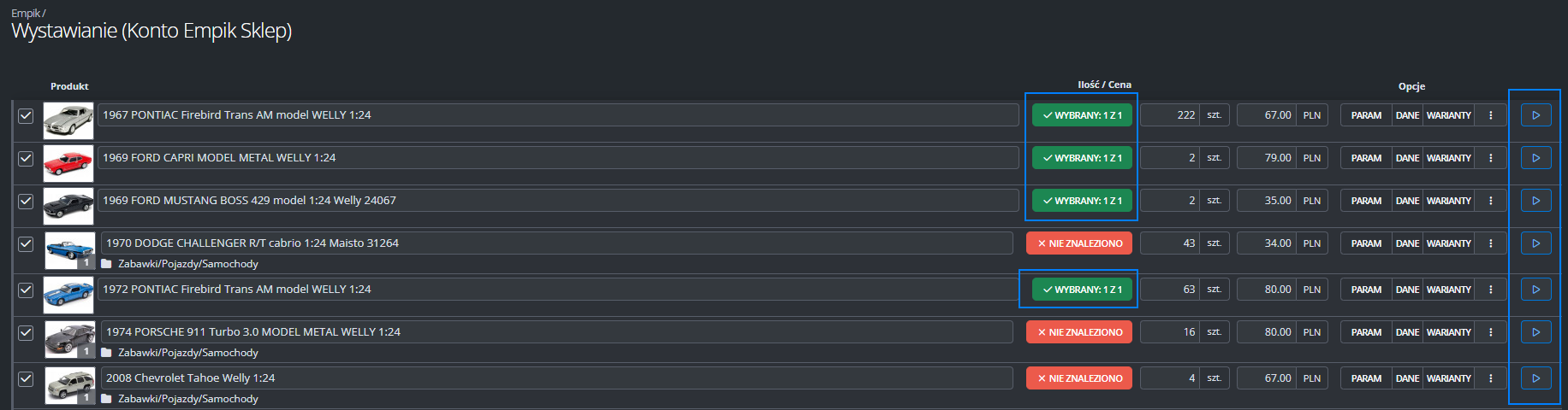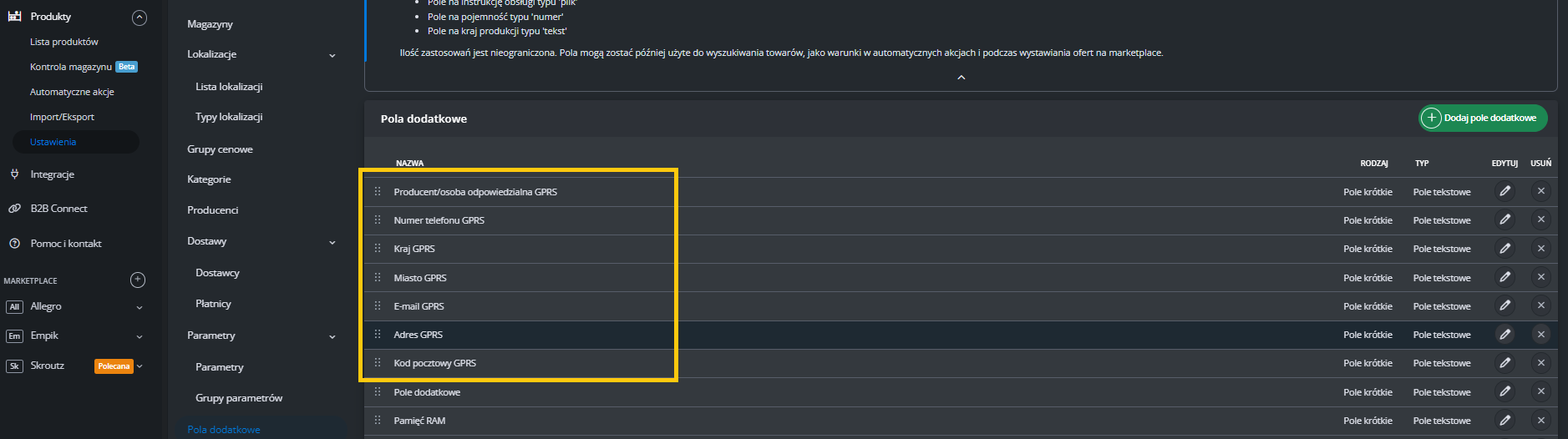 Dodatkowe ustawienia (ceny, czas wysyłki, stan, klasa logistyczna)