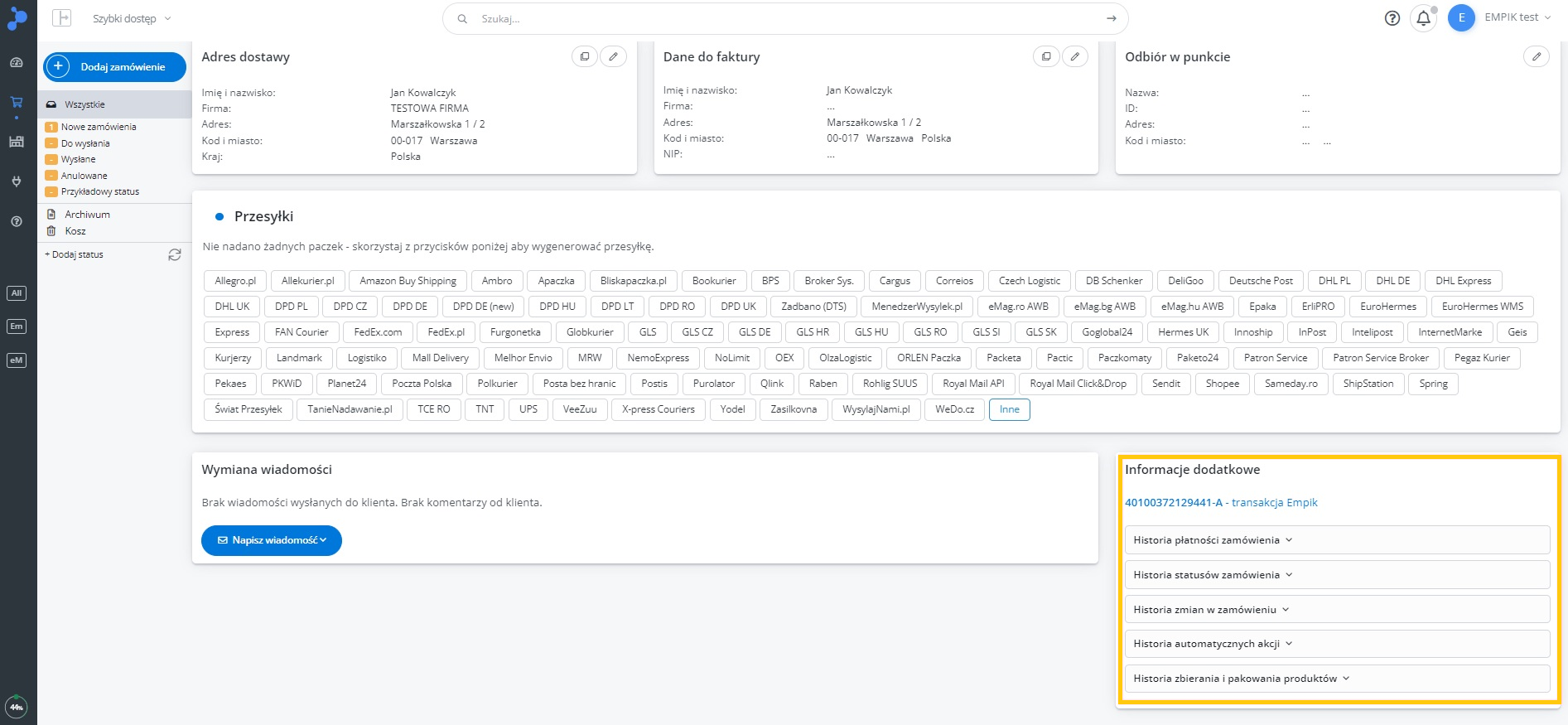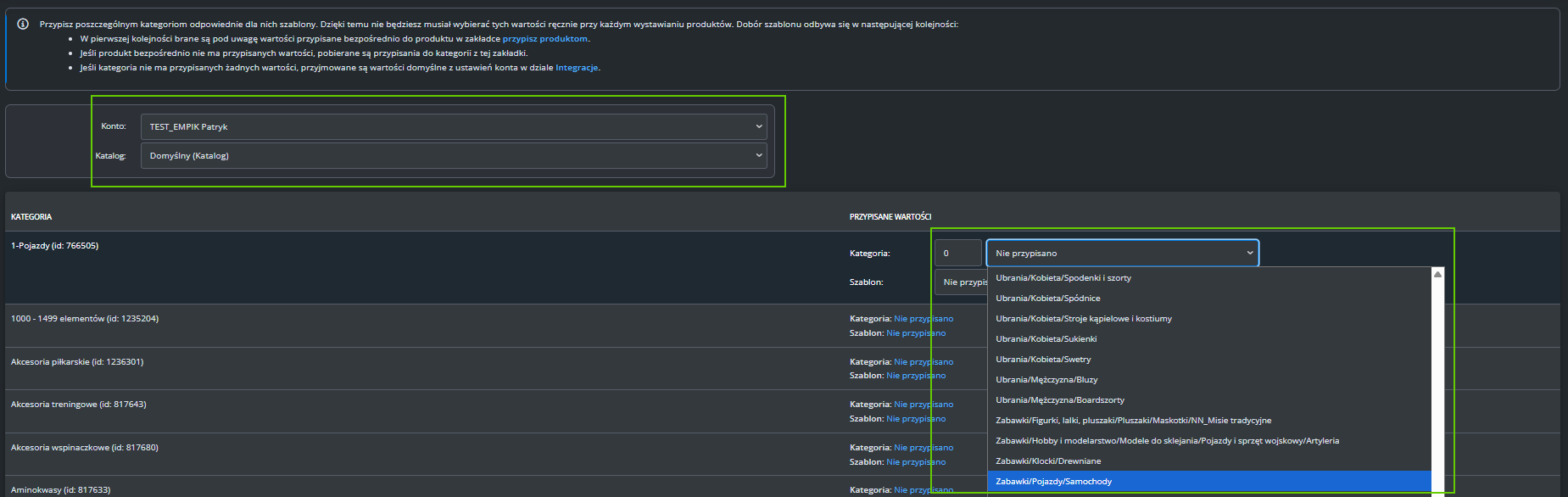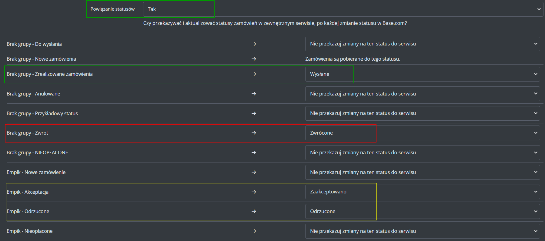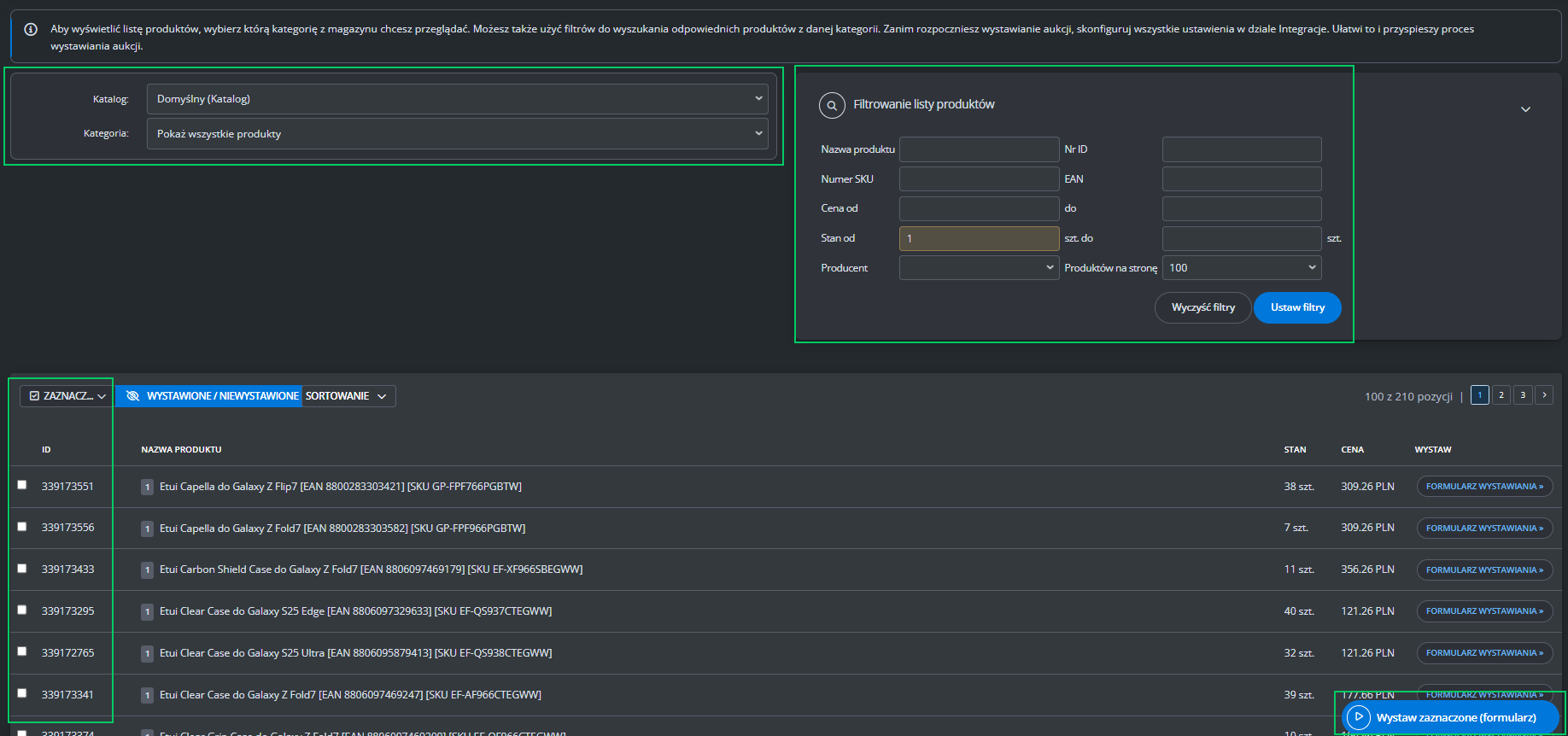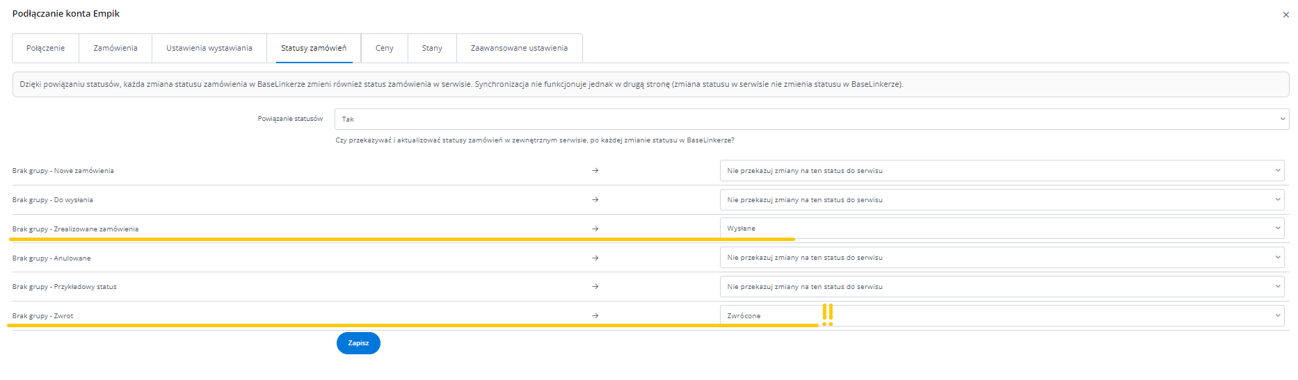 Dodatkowe ustawienia (ceny, czas wysyłki, stan, klasa logistyczna)