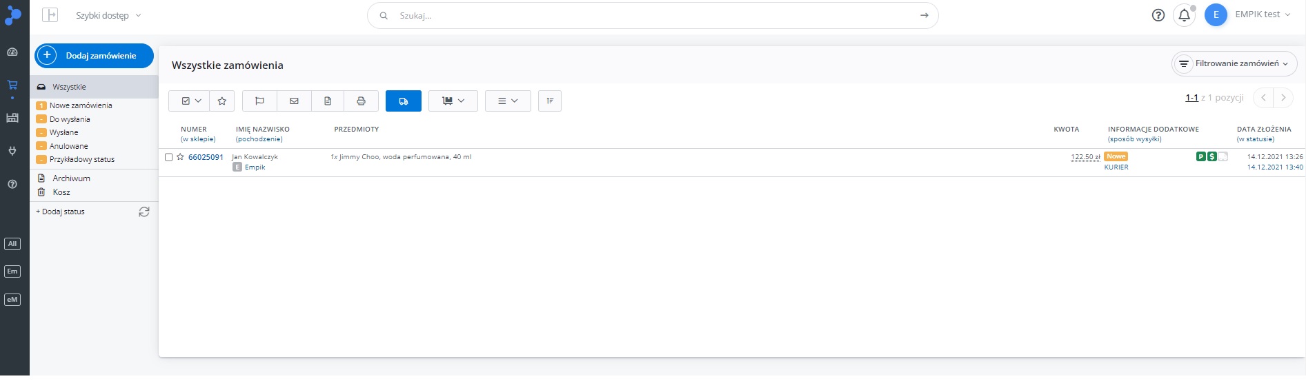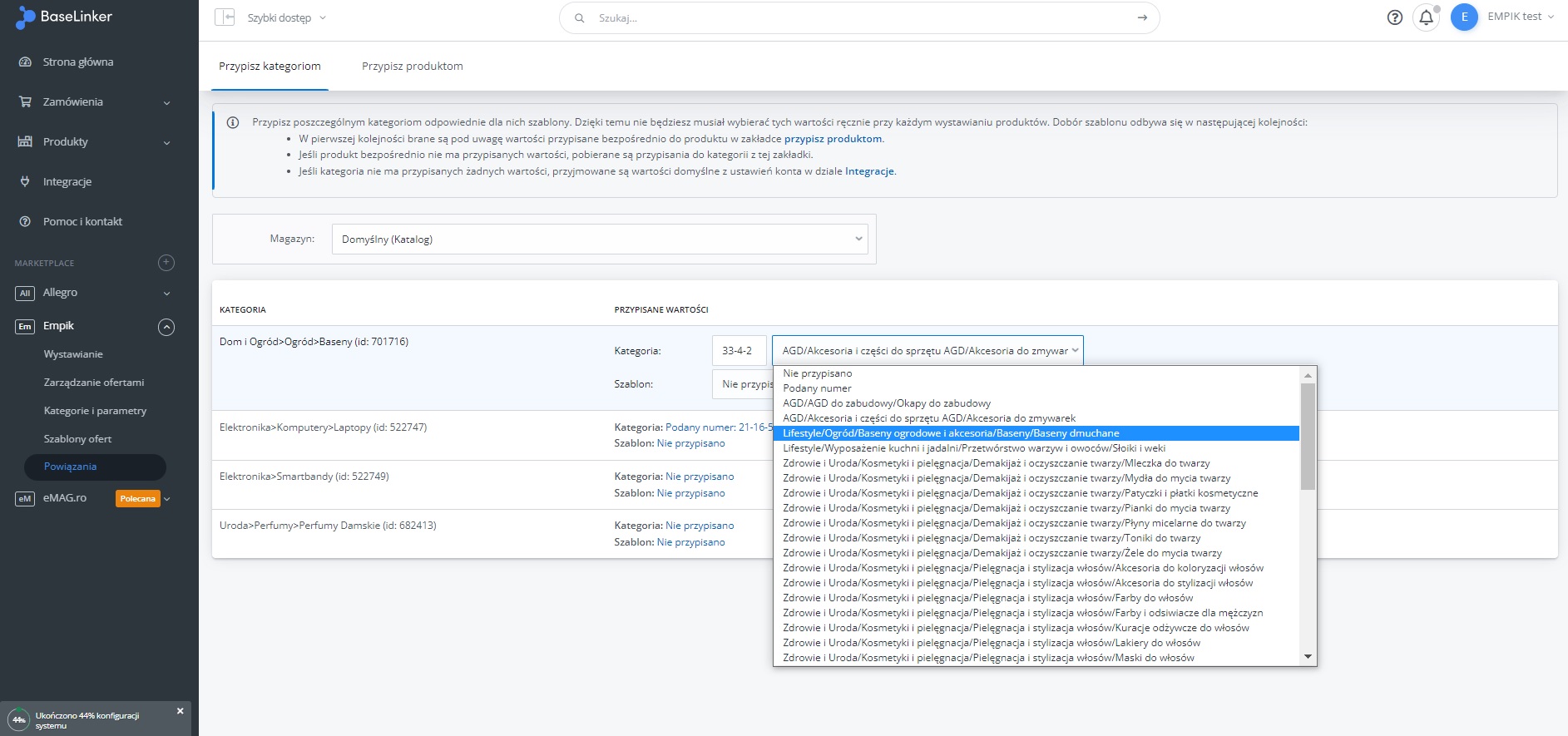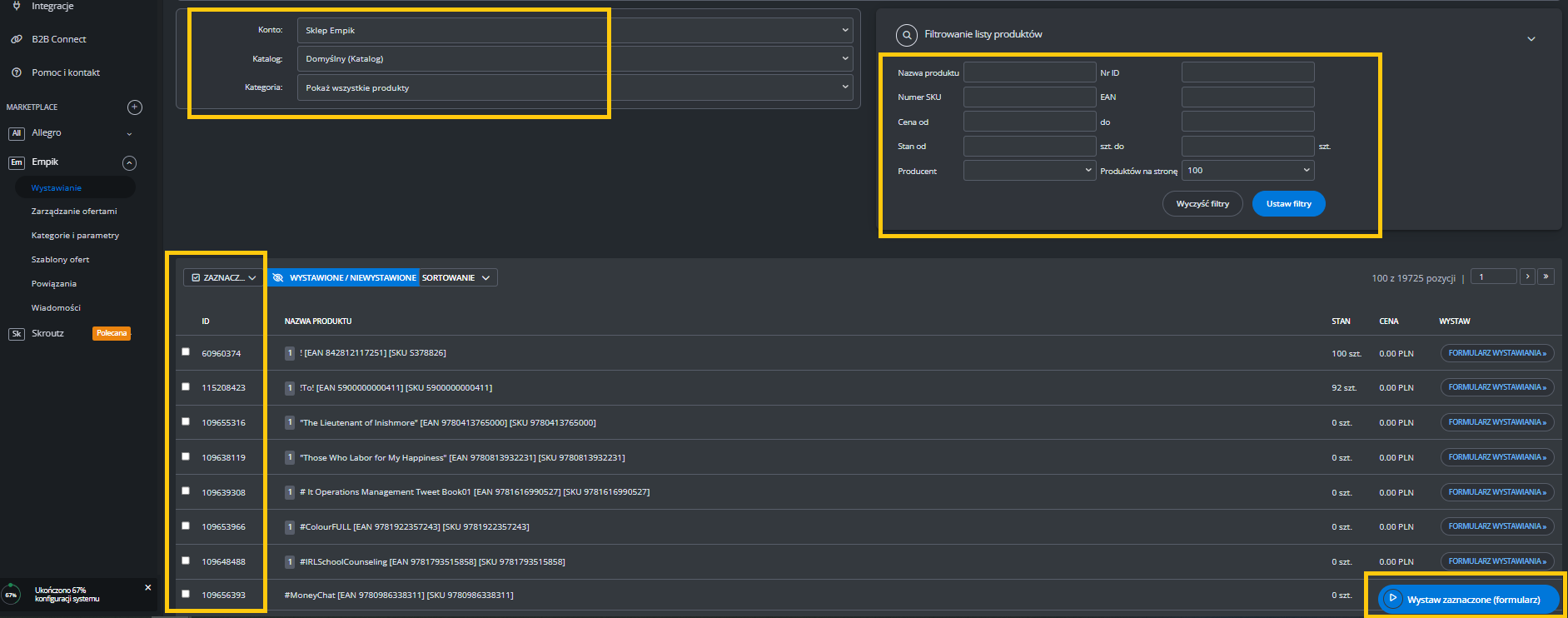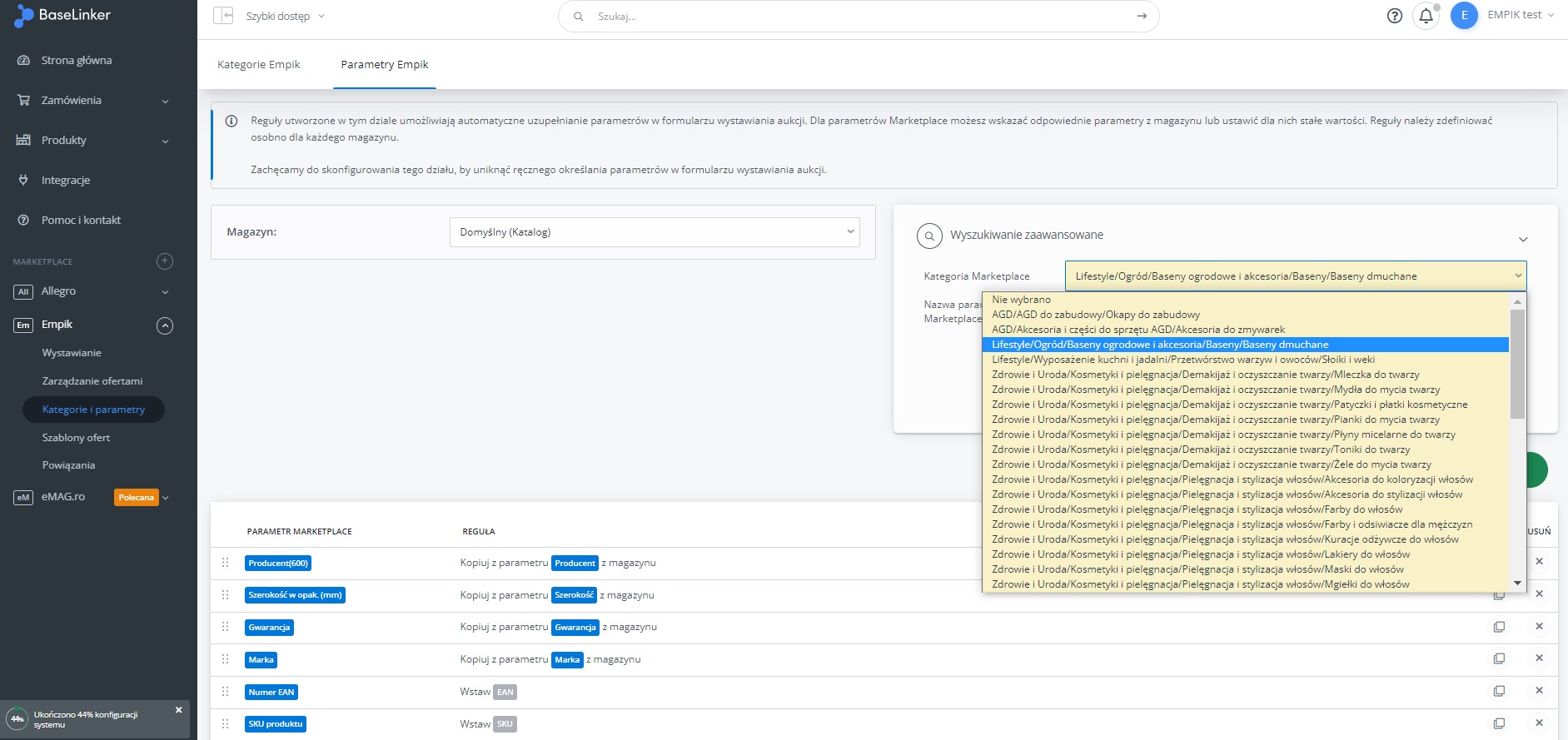 W menu przejdź do Produkty -> Import/Eksport -> Eksport i znajdź eksport "Oferty Empik Marketplace".