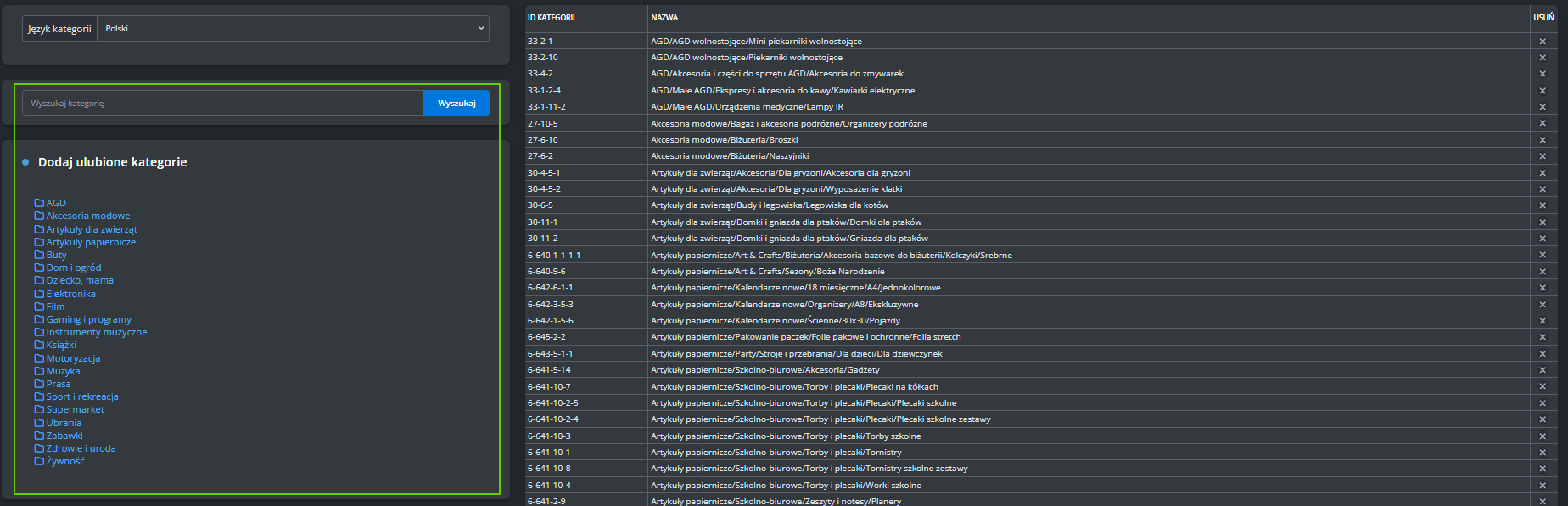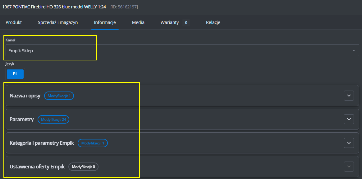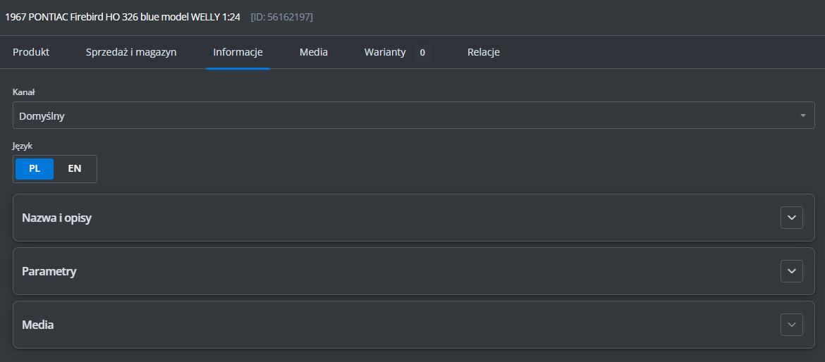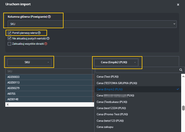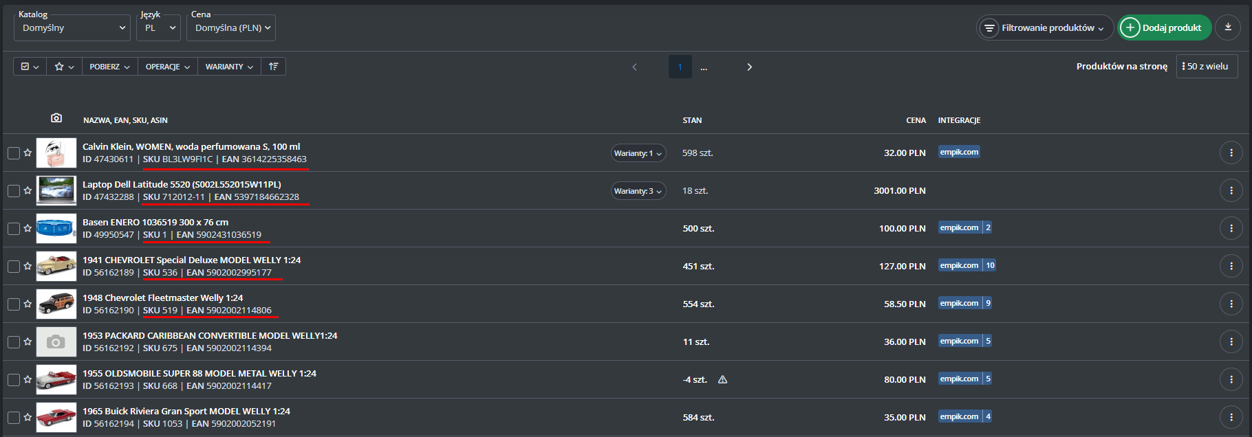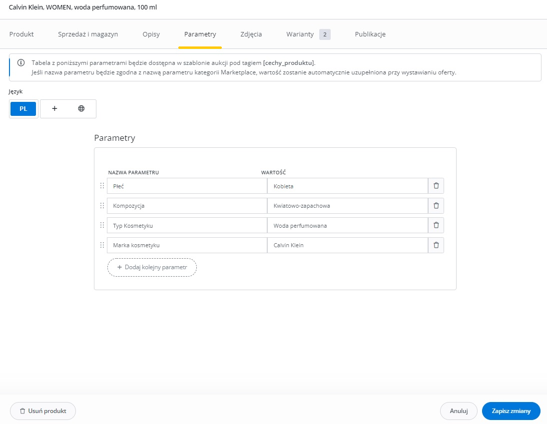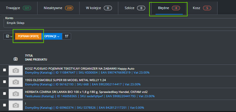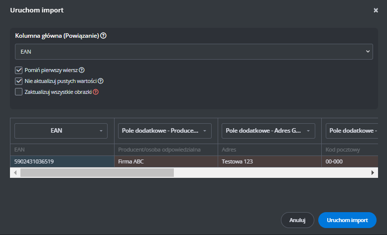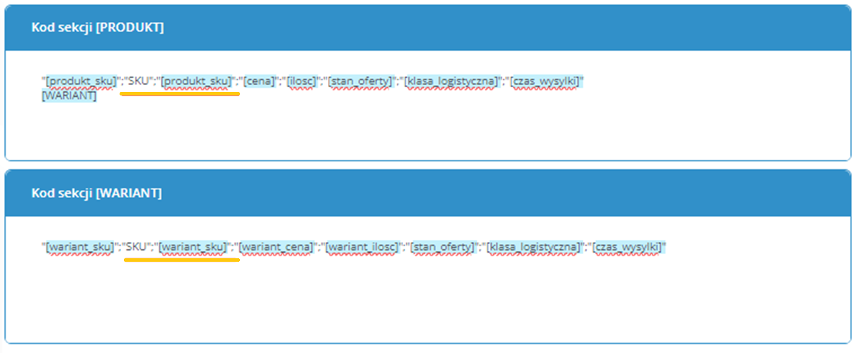 Jeśli chcesz, aby plik używał numeru SKU zamiast EAN, zmień tagi w sekcjach [PRODUKT] i [WARIANT] z "EAN" na "SKU".