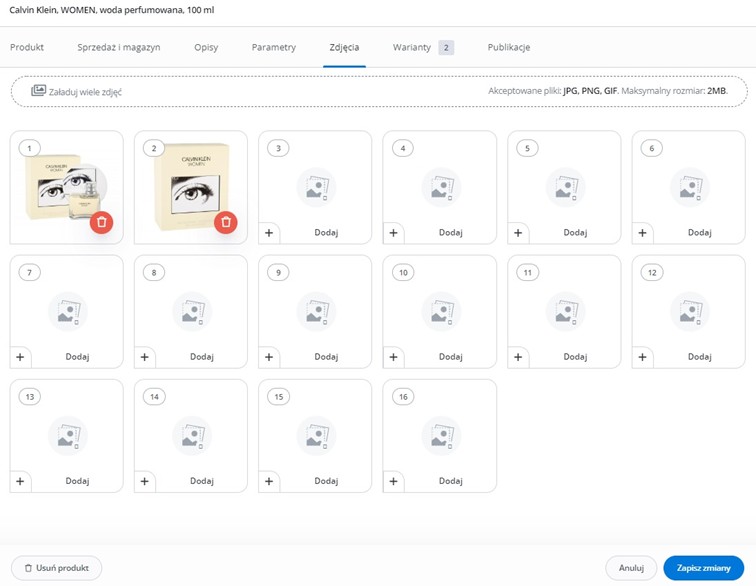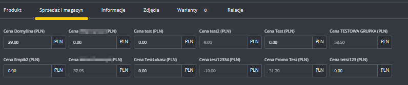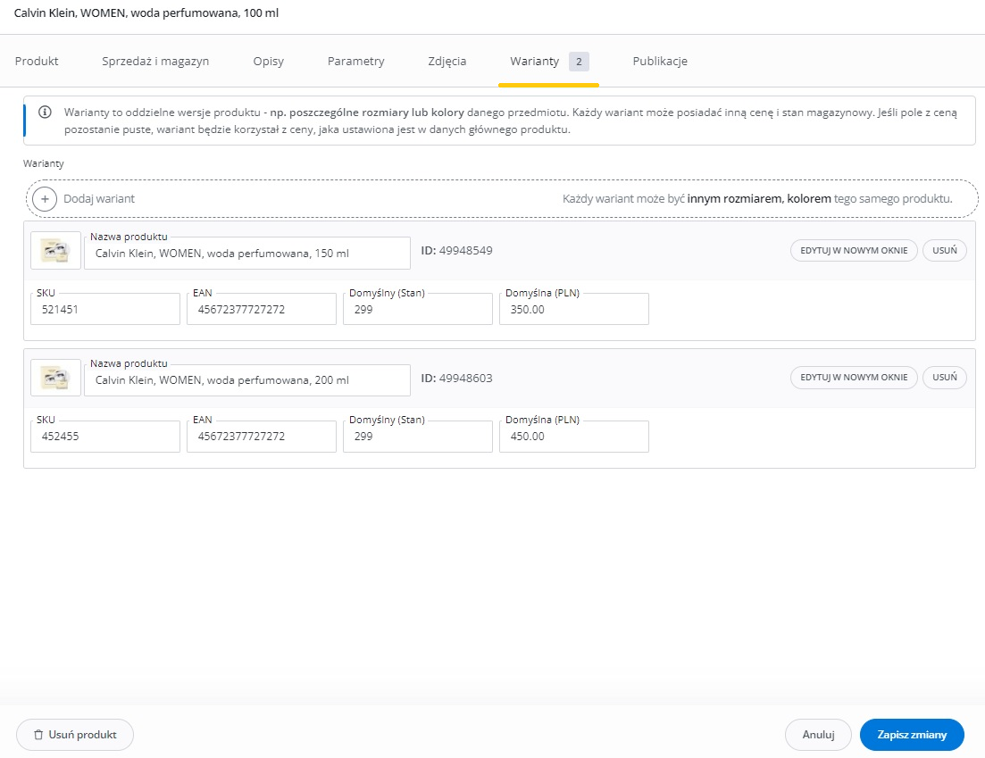 Można ustawić różny modyfikator dla produktów i dla wariantów