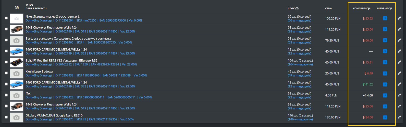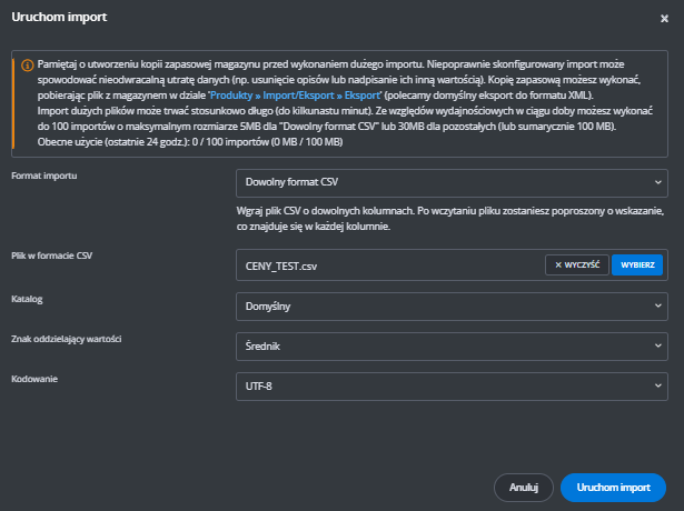 Plik CSV możesz dopasować do swoich potrzeb - np. zmienić ceny, klasę logistyczną, stan produktu albo sposób identyfikacji (EAN/SKU).