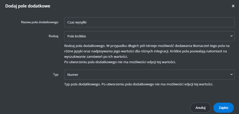 Czas wysyłki - wpisz liczbę od 1 do 45, albo zostaw puste.