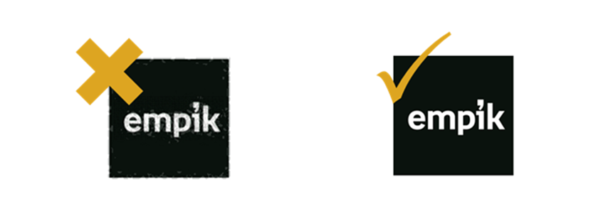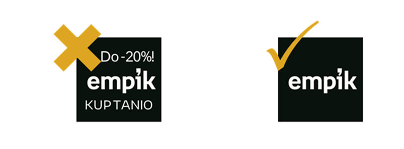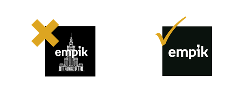 lub uproszczona wersja znaku marki. Unikaj detali, złożonych grafik oraz