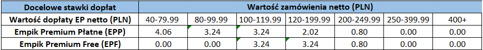 Rekompensata do kosztów dostawy do salonu w ramach programu Empik Premium wygląda następująco (kwoty netto):