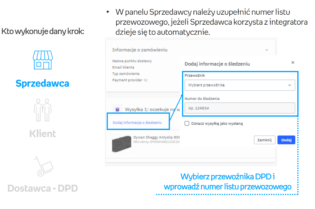 - Proces dostawy zostaje zakończony po stronie przewoźnika.