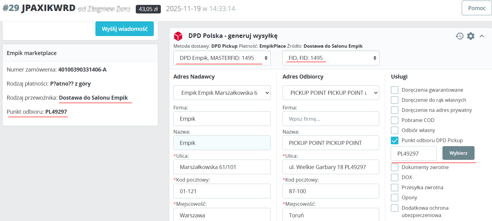 Salony Empik nie są zwykłymi punktami DPD, więc nie pokażą się przy wyborze punktu odbioru.