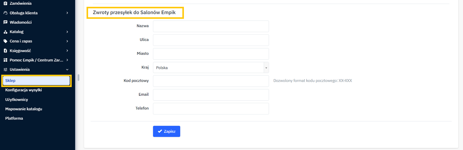 W przypadku autorskiego rozwiązania zintegrowanego z panelem EmpikPlace do konfiguracji tej metody wysyłki należy: