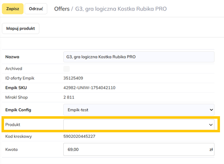 Zaznacz, aby pobrać wszystkie oferty z Empik w celu późniejszego mapowania z produktami w magazynie.