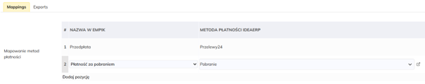 Wskaż wartości, które mają być przypisane do integracji. Na ich podstawie system generuje dokumenty sprzedaży, przypisuje dzienniki (faktur/paragonów) oraz pozostałe dane handlowe.