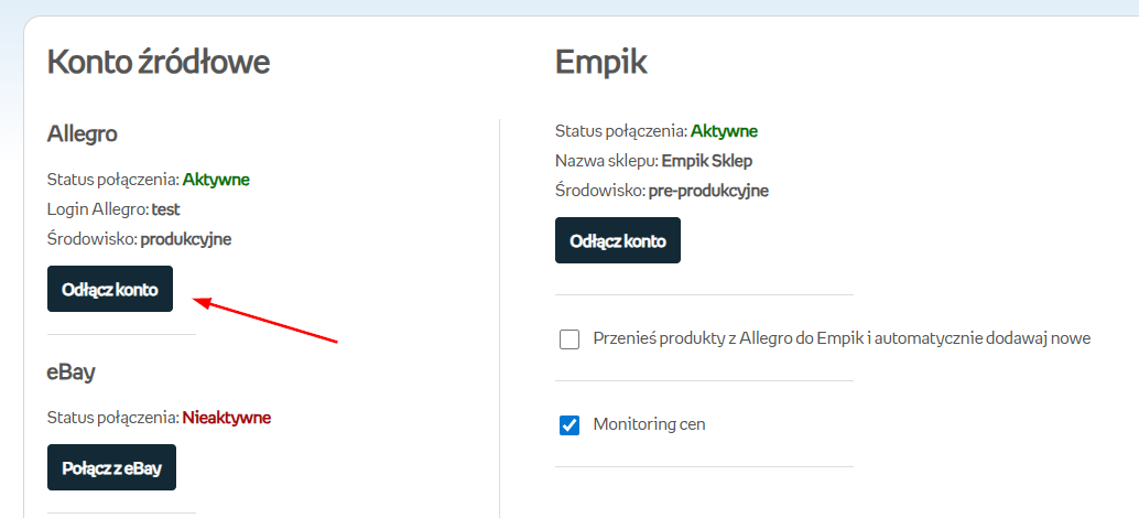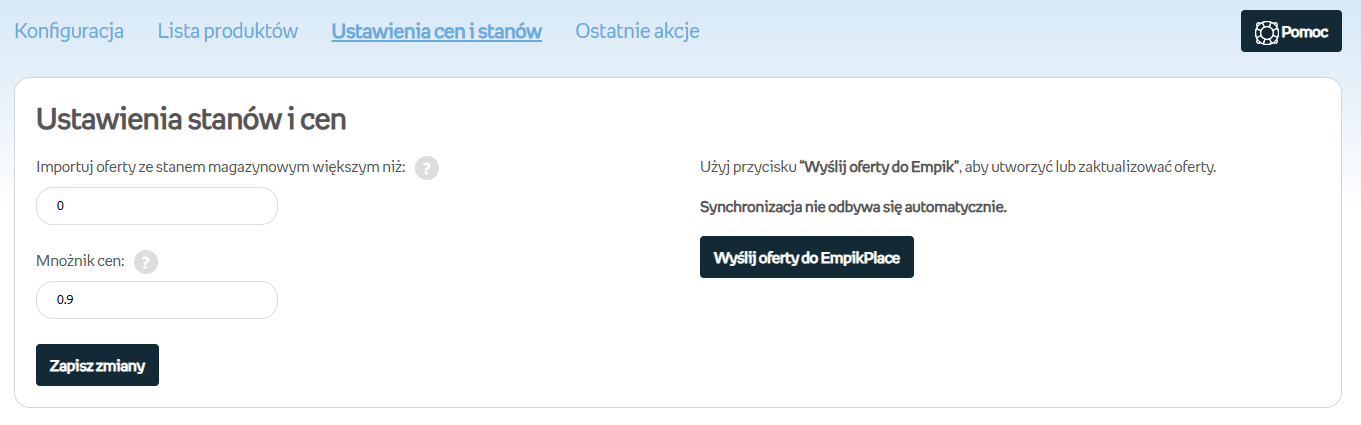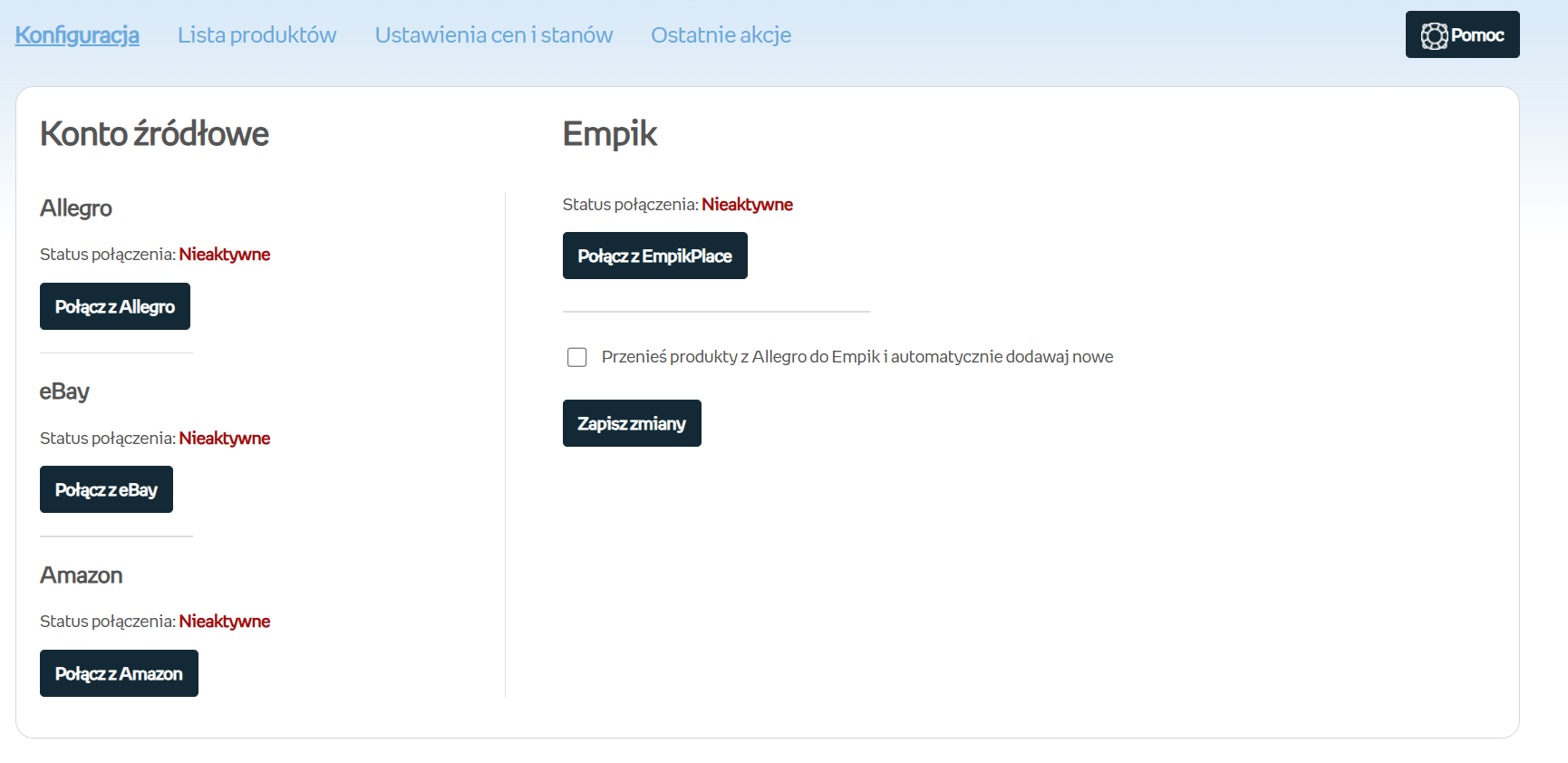 - Brak integracji - Panel Sprzedawcy EmpikPlace
