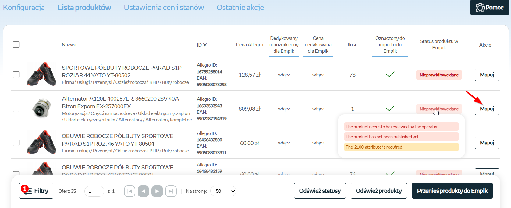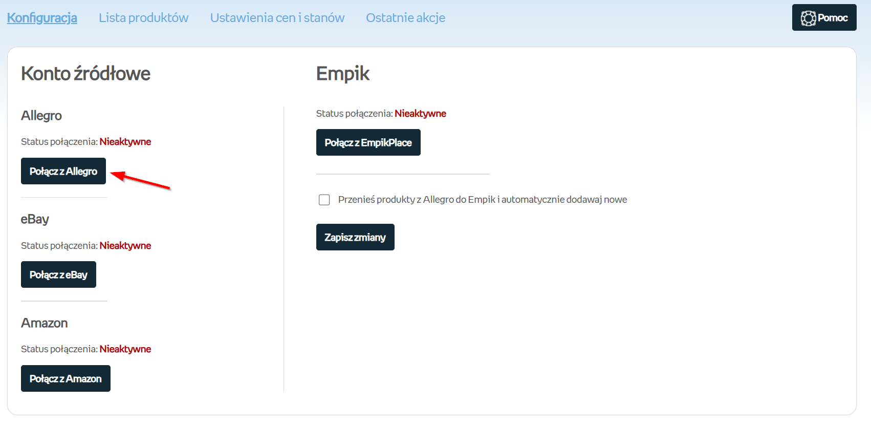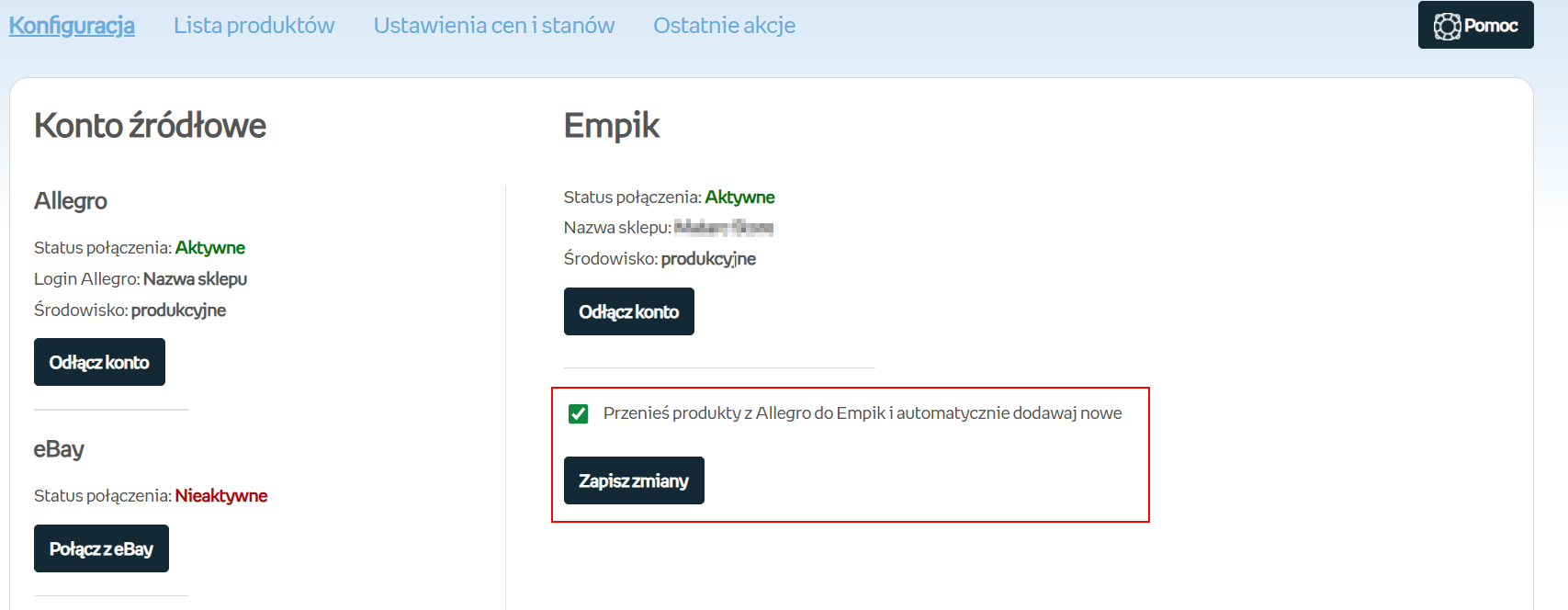 Upewnij się też, że w konfiguracji integracji z Empik jako identyfikator masz ustawiony kod EAN.