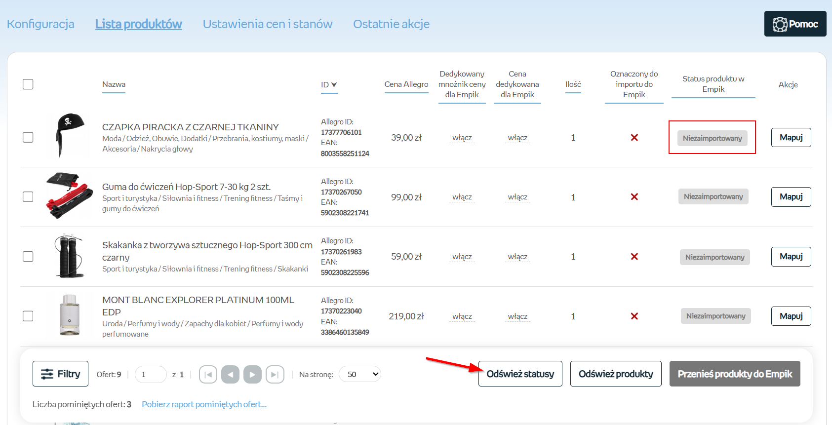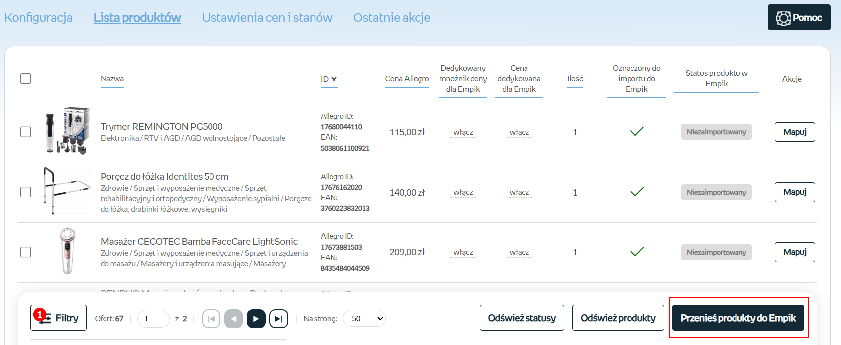 Jeżeli masz już oznaczone wszystkie produkty do importu ofert, to oferty automatycznie się wystawią po akceptacji produktów w katalogu Empik.