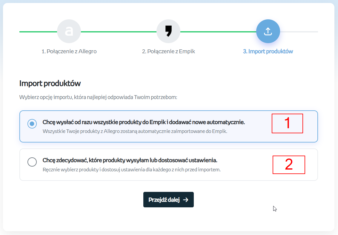 W kolejnym oknie oznacz produkty i kliknij "dodaj". W kolejny imporcie stworzą się nowe oferty.