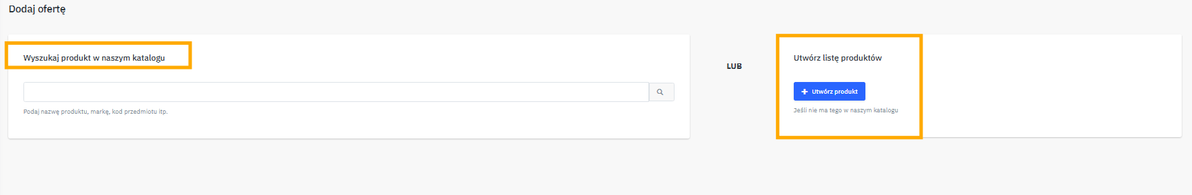 Jeśli produkt nie zostanie wyszukany - kliknij w przycisk Utwórz produkt po prawej stronie.