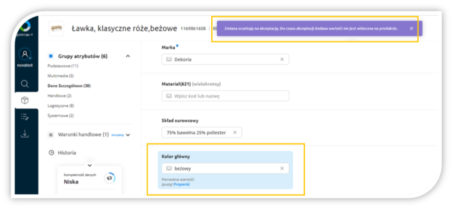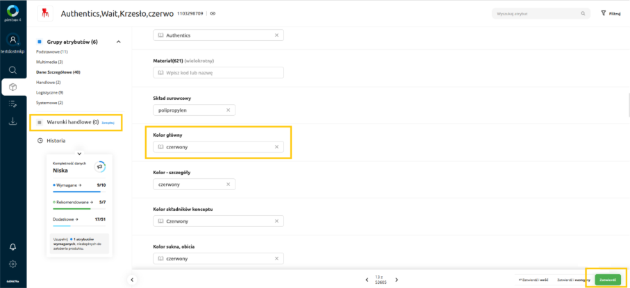 To zestaw dozwolonych opcji w polach produktu, np. w polu „Marka” to Nike, Samsung, Empik, a w polu „Kolor” to czerwony, niebieski, żółty. Gwarantują one spójność danych i ułatwia wyszukiwanie produktów na stronie Empik.