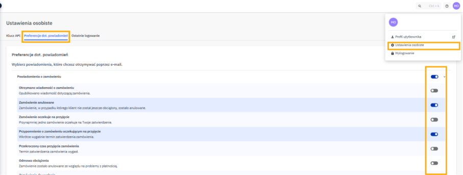 Jak ustawić powiadomienia o zamówieniach i zdarzeniach