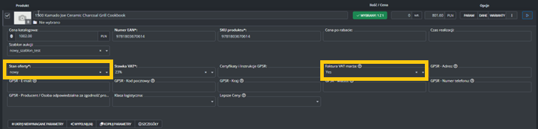 Jeśli chcesz dodać do oferty produkt używany, zrobisz to bezpośrednio w formularzu wystawiania: