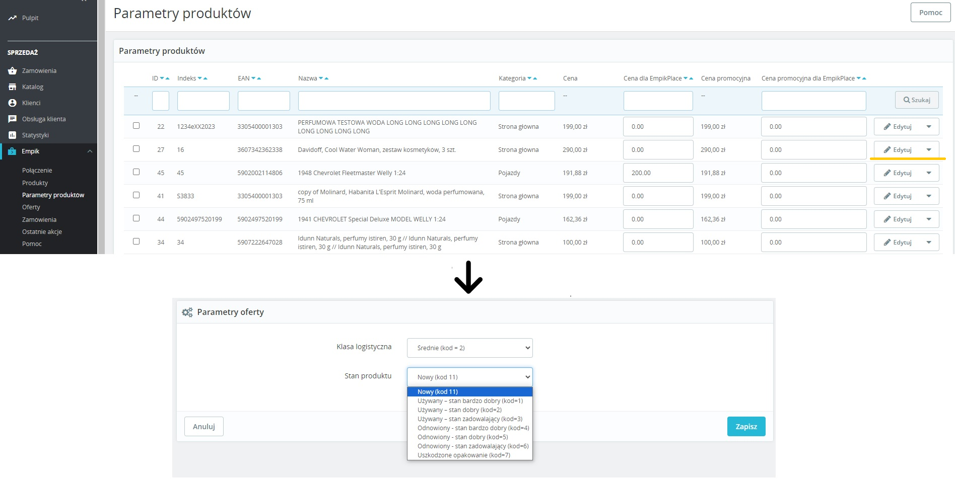W polu „Stan produktu Empik” wybierz odpowiednią wartość i zapisz zmiany (opublikuj produkt).