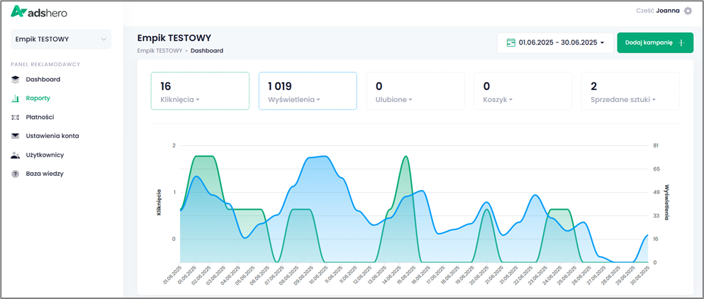 kliknięć, wyświetlenia, CTR i całkowity koszt. Umożliwia szybką ocenę ogólnej