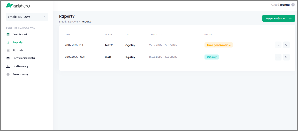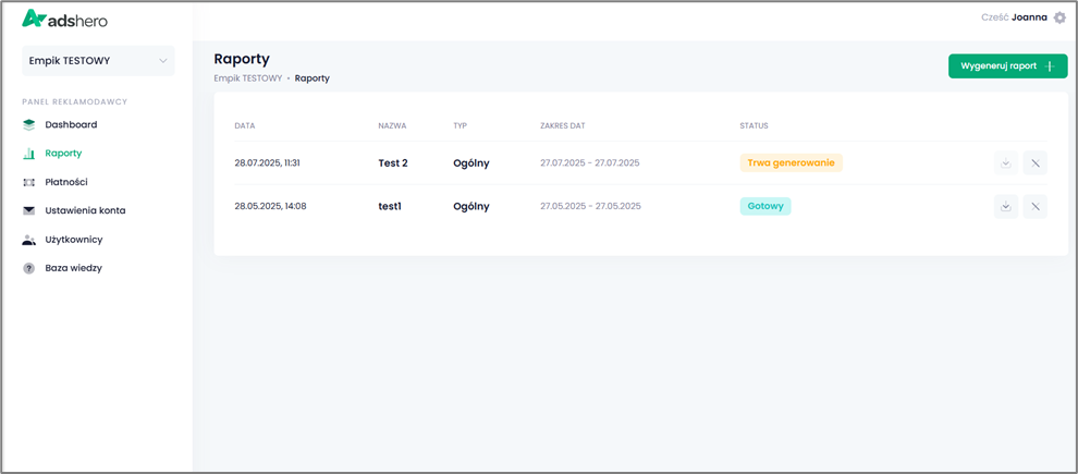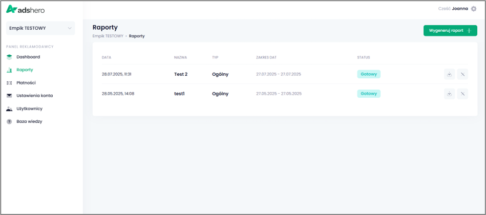 Nazwę raportu – wewnętrzną, widoczną tylko dla Ciebie;