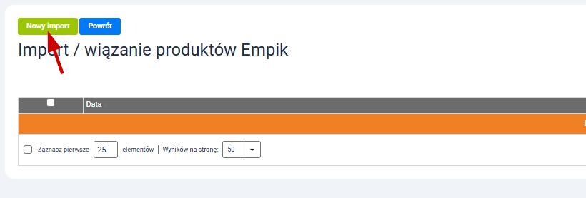 Przejdź do Ustawienia integracji → Importy produktów i kliknij „Nowy import”.