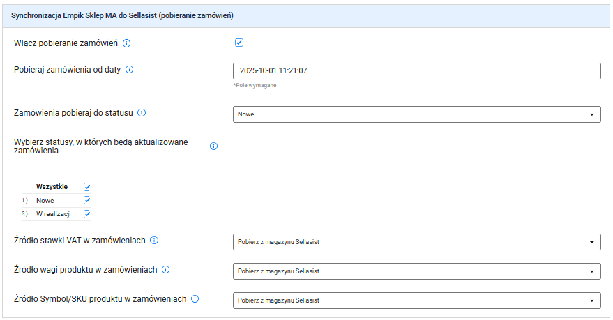Zamówienia złożone na empik.com mogą być automatycznie akceptowane i pobierane do panelu Sellasist — w zależności od ustawień integracji.