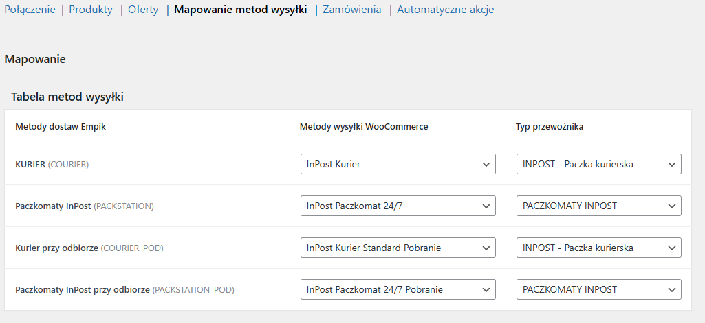 Potrzebne adresy znajdziesz w Ustawienia > Empik > Połączenie. Adresy URL rozróżnisz dzięki zawartej w nich frazie: